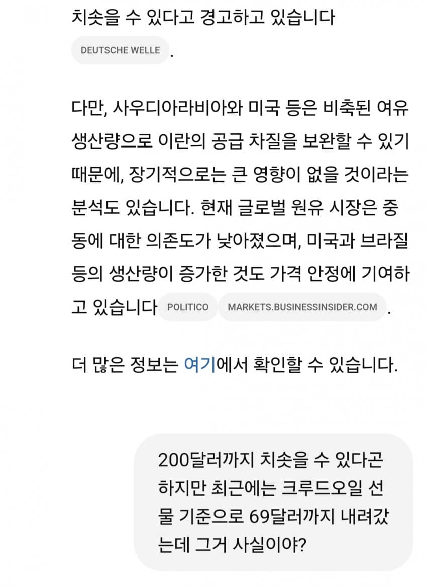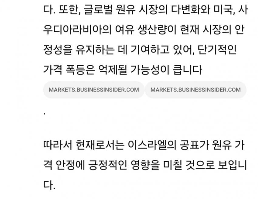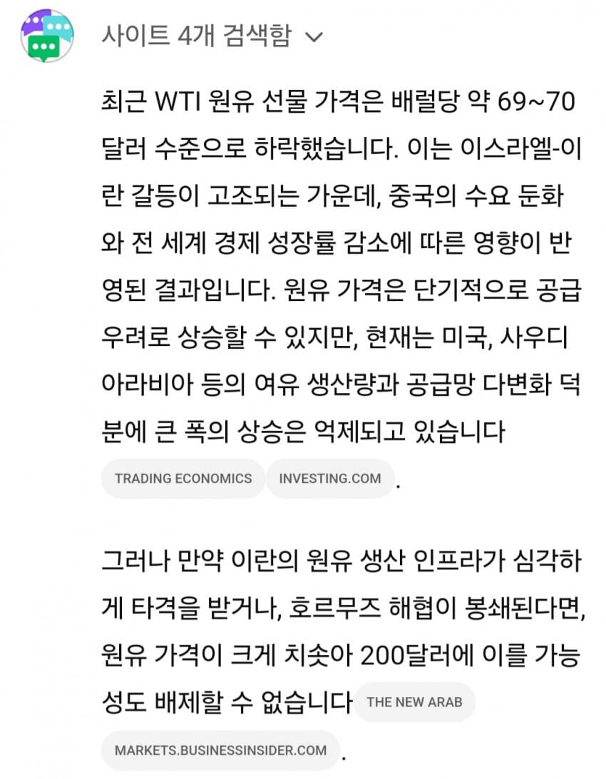 | 챗GPT 사용 예시 매크로 이슈 체크용(원유가격) |