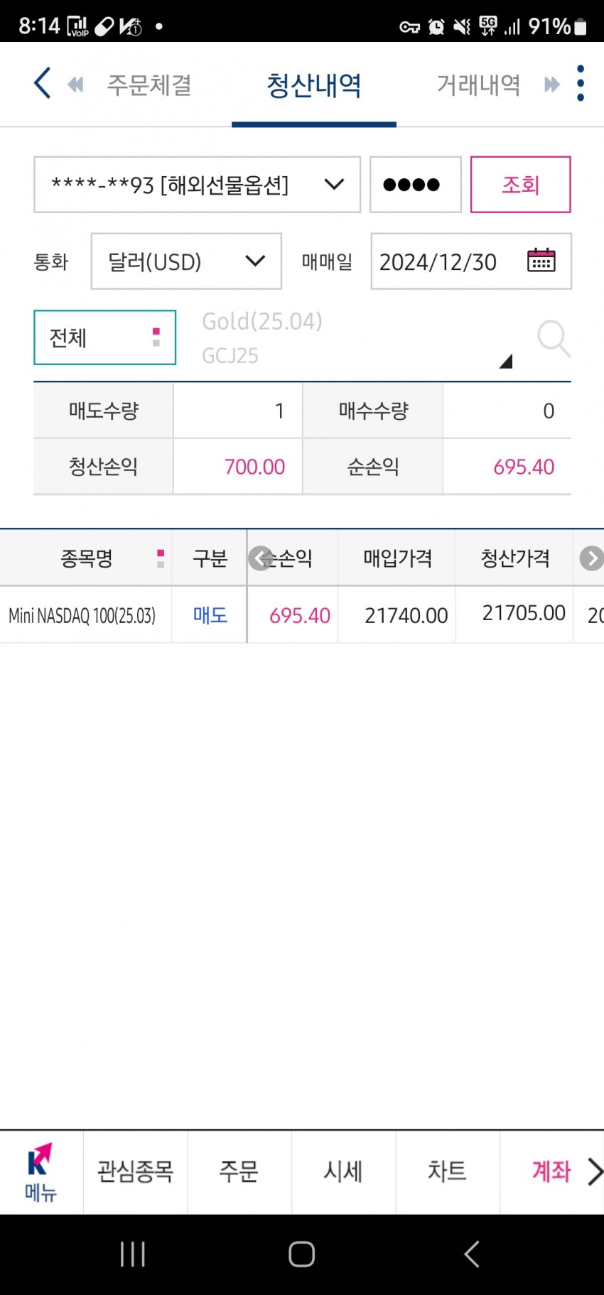 나스닥 740 매도성공 우마이